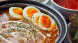 大量の野菜を油でいため、水を一切使わずに煮込み続けるため味はかなり濃厚。