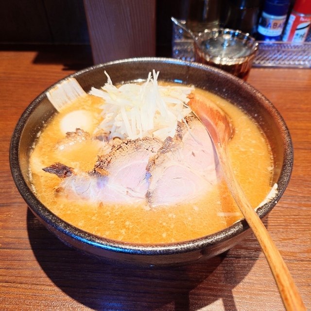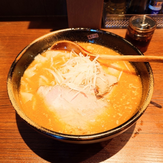 スープは魚介と濃い白味噌がうまくブレンドされていて、辛いだけでなくこってりした旨味も楽しめる。