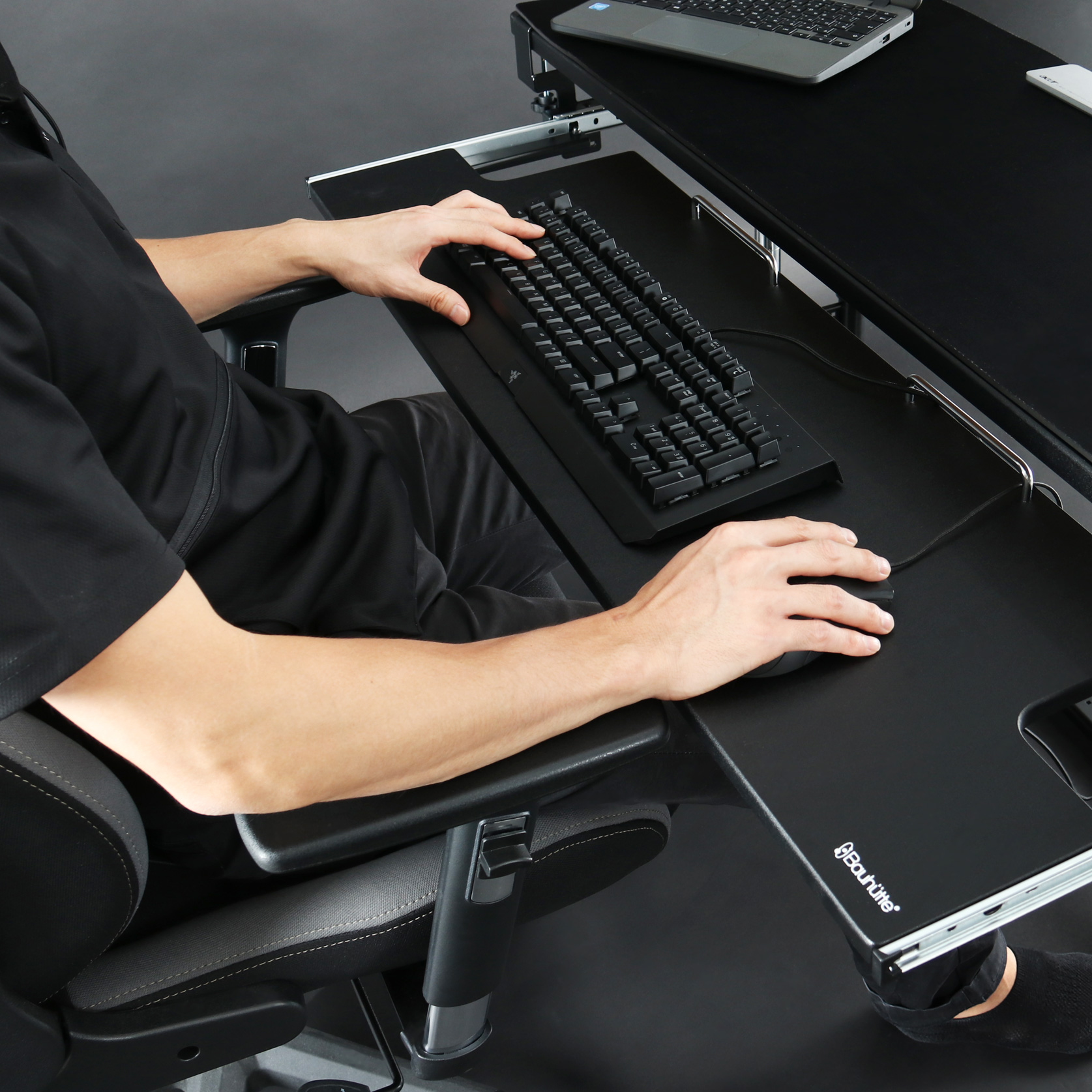 そんな時は後付けできるキーボードスライダーがおすすめ。机のしたに片付けられますよ。